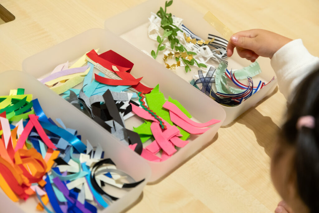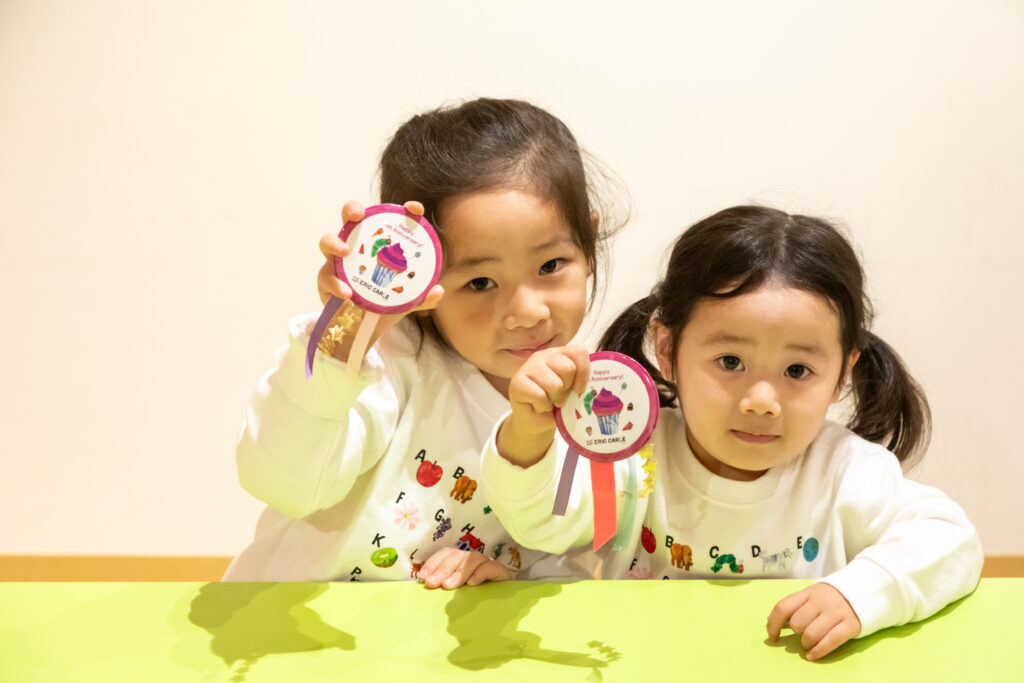 PLAY! PARK ERIC CARLE オープン4周年記念の缶バッチに、色とりどりのリボンをデコレーションして、おめでとうバッチを作ろう!