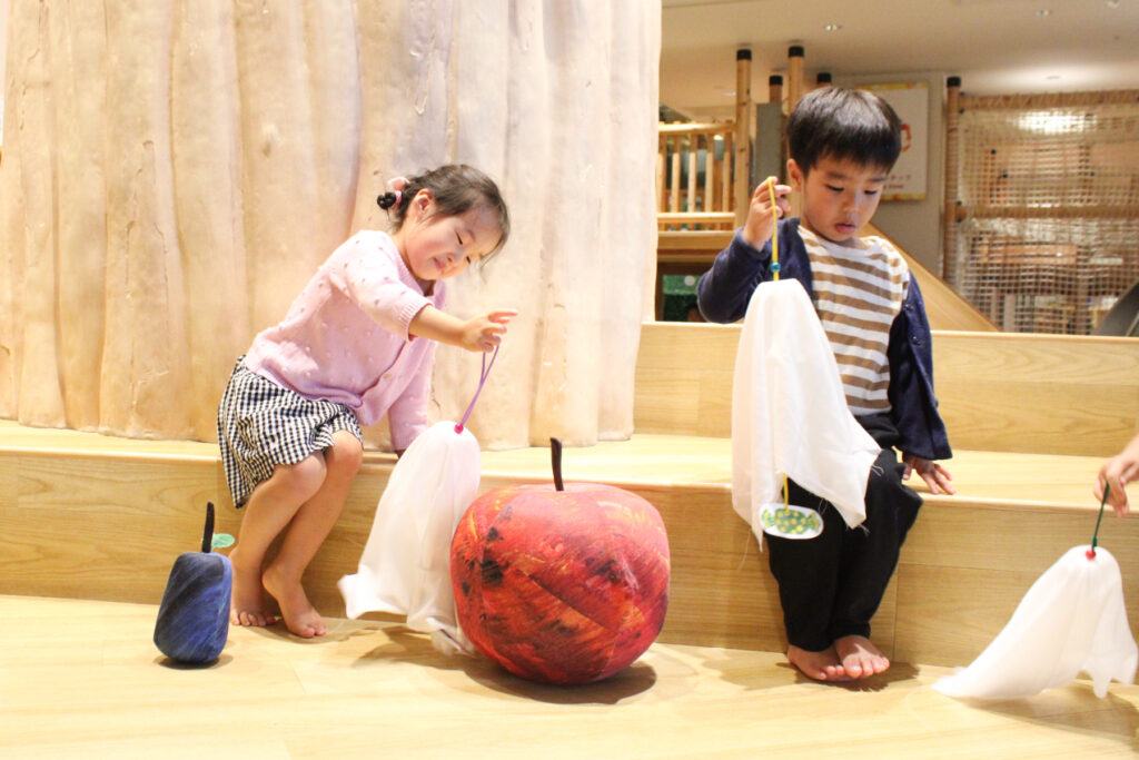 紐をひっぱってふわふわとお散歩をさせたり、ごちそうを探しに連れだしたりと、オバケと一緒にパークを楽しみましょう。