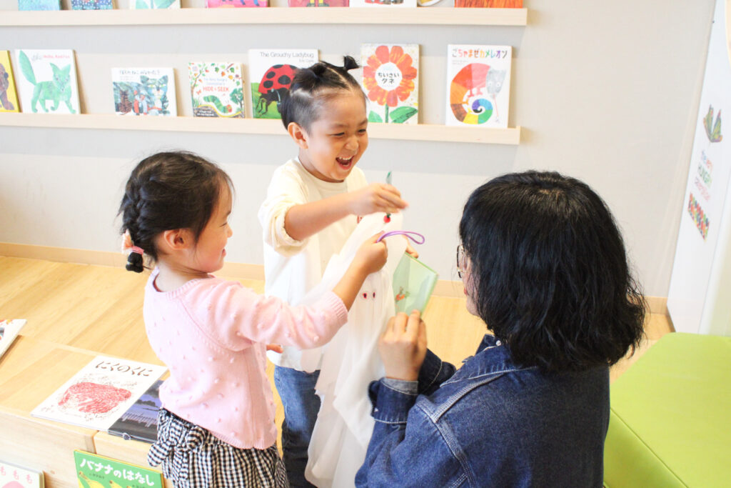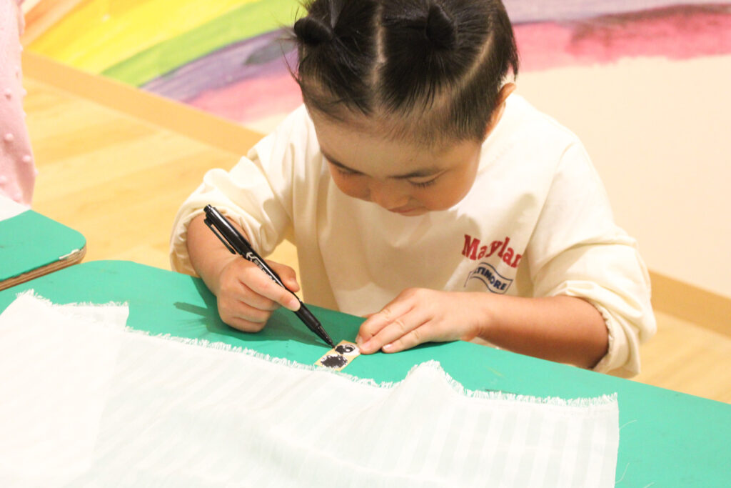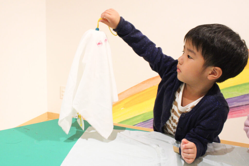 質感や柄が異なる白い布の中から好きなものを選び、オリジナルのオバケを作ります。