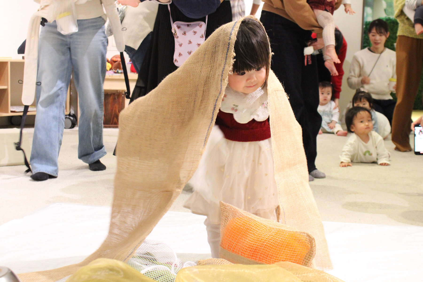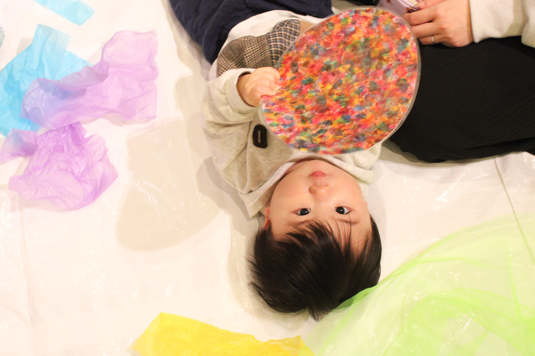 0歳のお子様から楽しめる、五感を使ってあそぶ体験型アートのワークショップ。