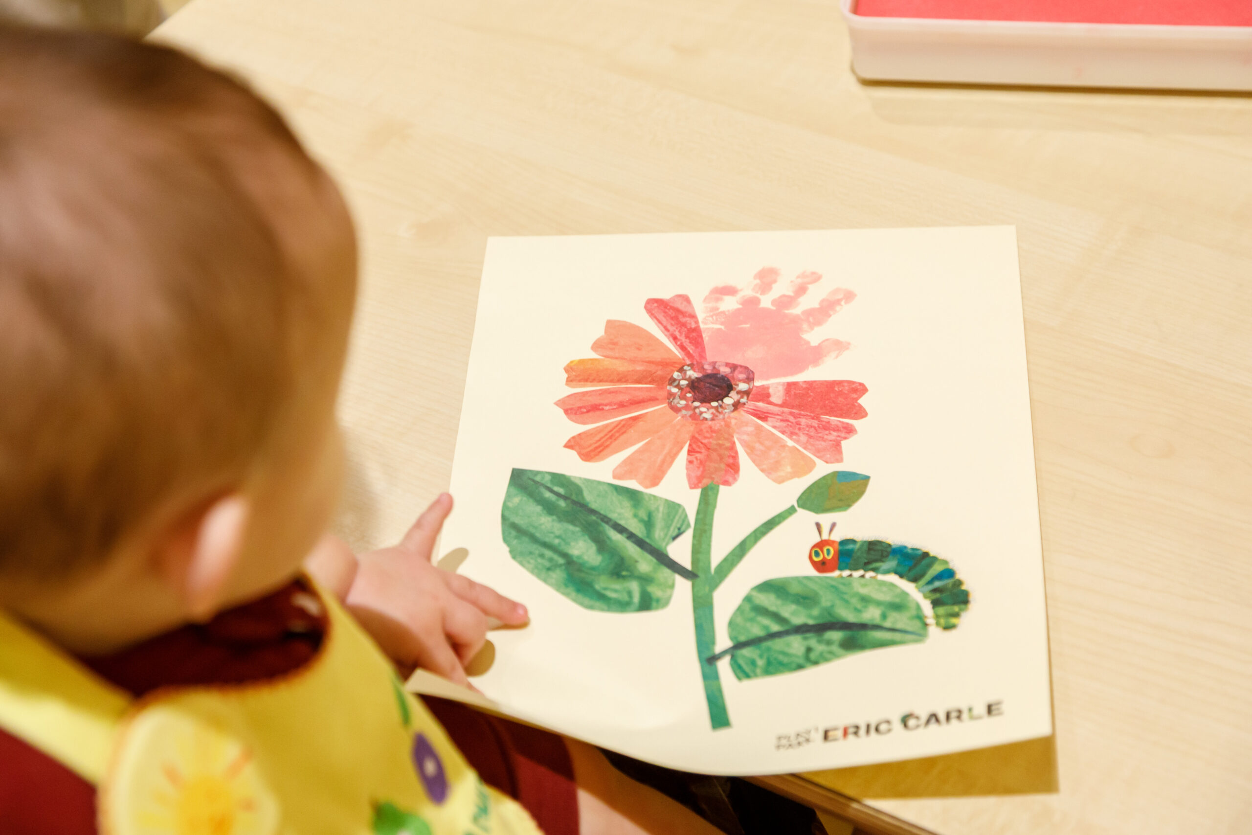 かわいい手形・足形が、エリック・カールが描いたイラストの一部に大変身!3~4月は、春にピッタリの「花」のイラストで開催します。