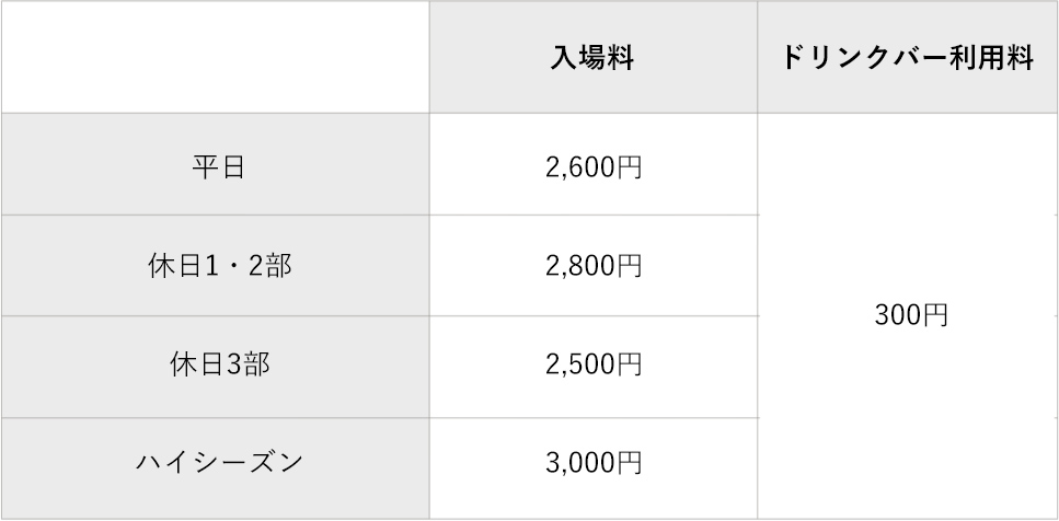 この度、2026年6月1日(月)ご入場分より、入場料金を改定いたします。あわせて、ドリンクバーの利用はオプションとして選択制といたします。