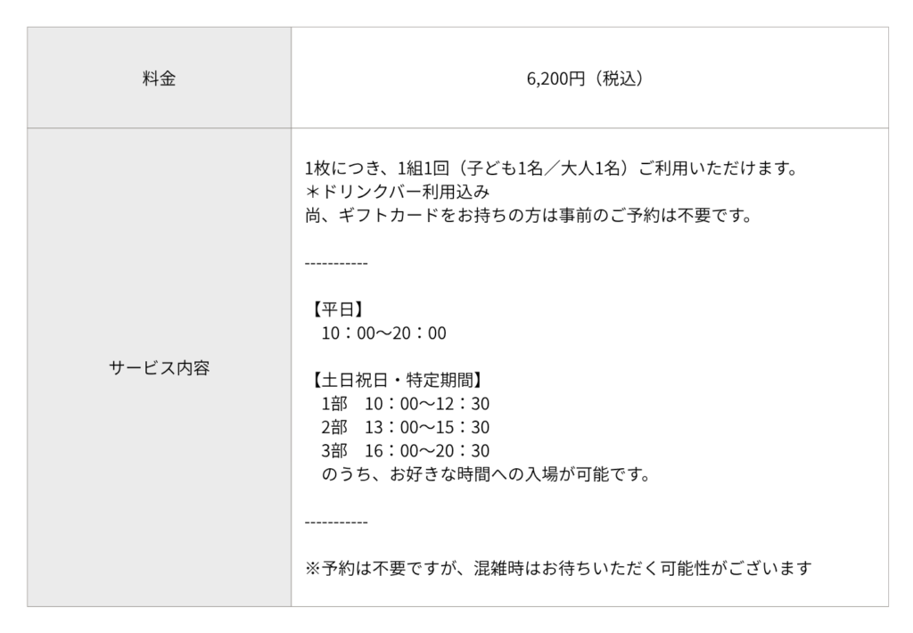 購入日から1か月間、対象の時間帯が遊び放題になる、お得なチケットです。