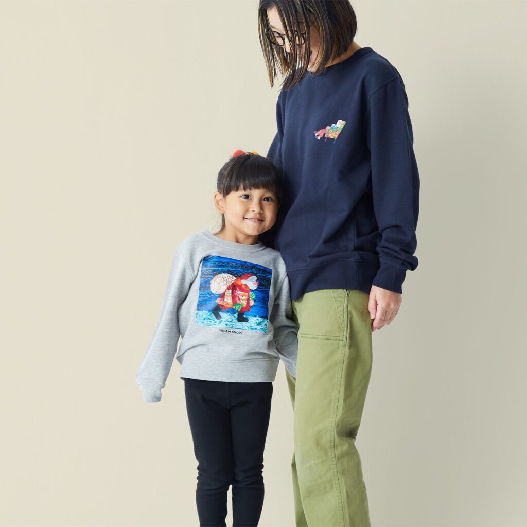 絵本『ゆめのゆき』の表紙をモチーフにしたトレーナー。8.4オンスのライトトレーナーなので、寒い冬から春先まで、長く着ることができます。